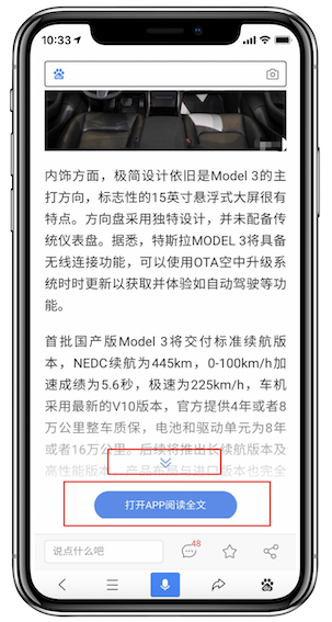 展開全文作為網頁功能按鈕,需要用文字向用戶說明該按鈕的作用,并給予用戶明確的操作指引,避免用戶誤操作,如下圖所示,該網頁展開全文功能無文字標識說明,箭頭指向的也是APP,容易被用戶誤以為只有下載APP才可以瀏覽全部內容,這樣設置對用戶是極其不友好的。