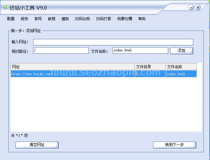 1,打開仿站小工具,輸入網址,設置頁面名稱,再添加即可。