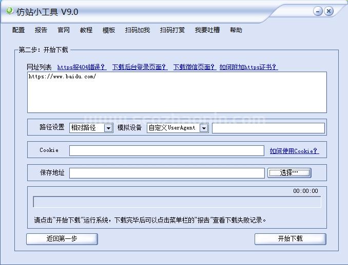 仿站小工具是通過網址下載靜態網頁的工具。從輸入的網址下載html代碼,提取出JS、Css、Image、Picture、Flash等靜態文件網址,再從下載完好的Css代碼中提取出Image靜態文件網址,通過網址下載靜態文件,根據軟件設置好的保存規則,自動修正html和css代碼鏈接路徑,最終這些靜態文件被按分類保存到電腦文件夾。