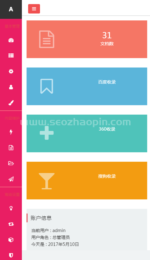 織夢DedeCMS響應式后臺管理系統(UTF8+GBK版本)移動端界面如下:
