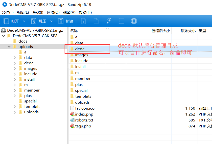 下載解壓后,選擇相應的編碼上傳到根目錄中,替換默認的dede,或者是重命名一個設置的后臺目錄即可。