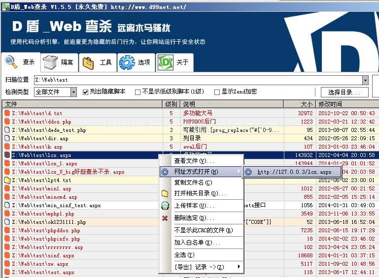 下載地址:http://www.d99net.net/down/WebShellKill_V2.0.9.zip