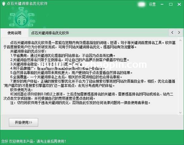 在本站下載點石關鍵詞排名優(yōu)化軟件,解壓之后雙擊.exe,就可以直接打開使用了,無需安裝