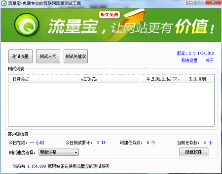 3.綠色免費 。流量寶為一款純綠色免安裝單文件軟件,僅為200KB,軟件界面簡潔友好,無須注冊,永久免費。
